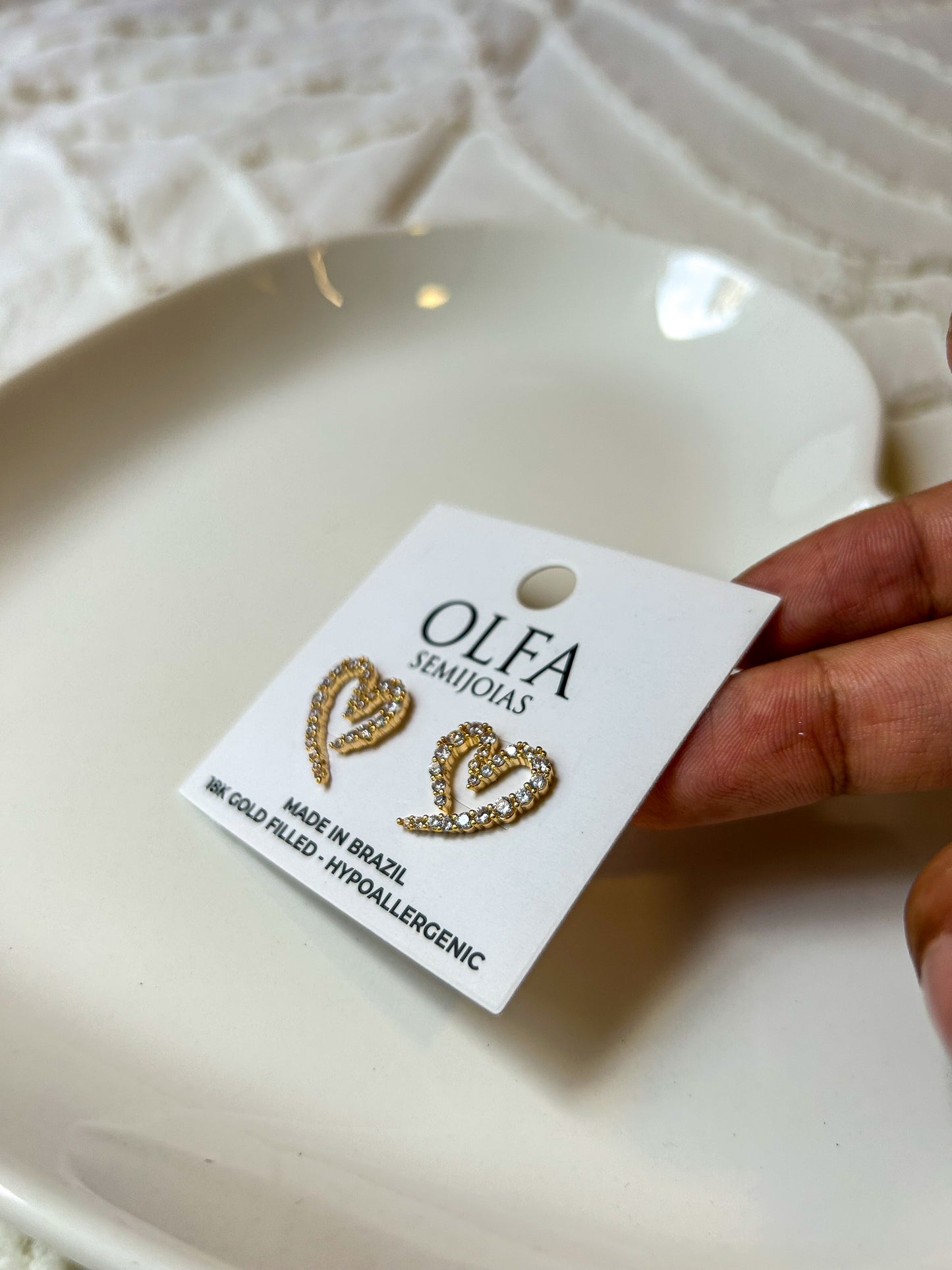 Brinco banhado a ouro 18k com camada protetora de verniz e detalhes cravejados em zircônia.