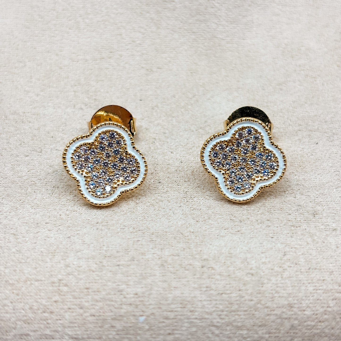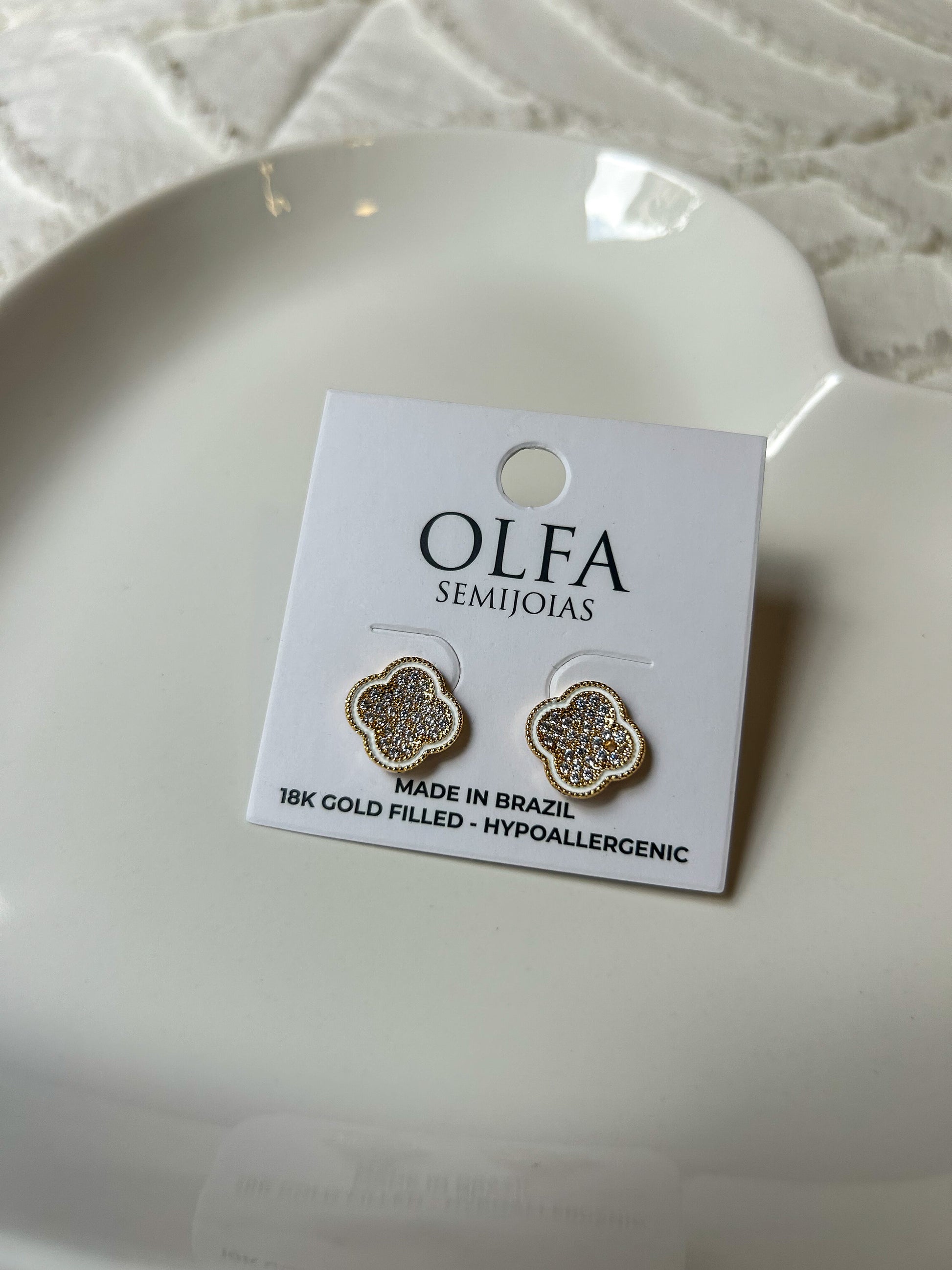 Brinco banhado a ouro 18K, com camada protetora de verniz, detalhes em zircônia e esmaltado.